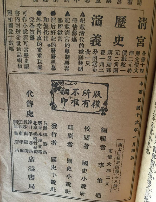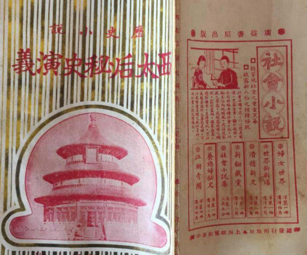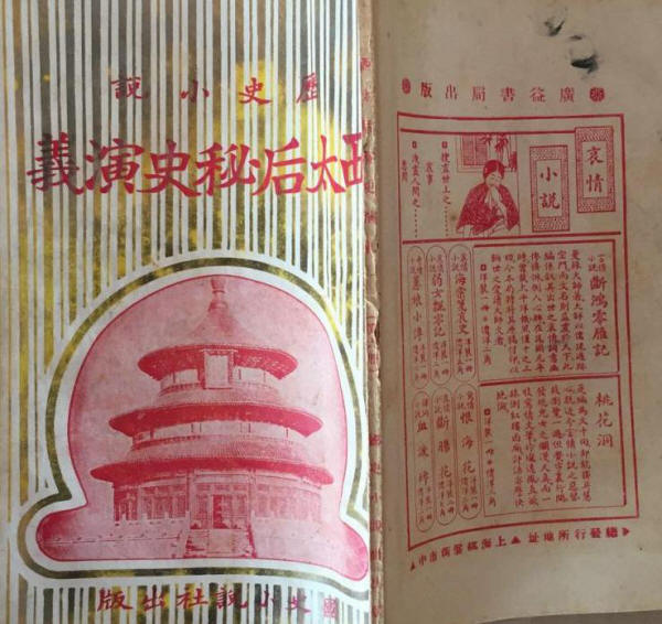 ↑西太后秘史演义,全八册,定价2元