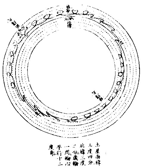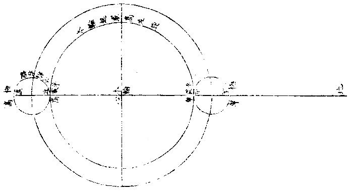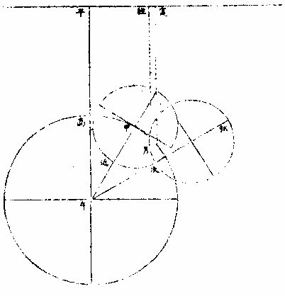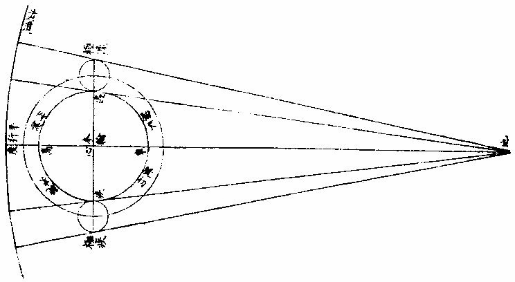 ▼七政部汇考四 《历象图说旧本》 远近次第图 ![]() 远近次第图说 “地居天中,与天度相应。七政运行于天之内,去地远近不同。最近地者月,次日金水次火,次木,次土。”最远恒星○以行之迟疾挍之,月速日金水迟,火又迟,木愈迟,土最迟,知弥近则速,弥远则迟也。以象之高下测之,火退望时,体大光灿,金水退伏,则遂出日下,月长掩日,是亦其以次而近之证。以理之阴阳推之,火木土,阳也,在日之外;金水月,阴也,在日之内,有男女正位之义焉。从前言七政共丽一天,然屈子又云:“圜则九重,孰营度之?”是必古有其说,而自汉以下失之也。今《历》言天,与九重说合。盖恒星七政并宗动,故为九宗。动者,无星之天,一气旋运,而为众动之宗者也。 所以知有此天者,此天枢纽系于太虚,万古不移。而恒星,天之极星,则去枢纽之不动者,较古以渐而远。 二十八舍,经纬因之,亦有古今之异,则是恒星自为一天,在此天之下,与七政同也。然此天者,外贯轴于太虚,而内根极于坤厚,所以日月星辰,潜移嘿运,而两极之在地平者,无今古之殊观,足以悟其表里之相应矣○。朱子云:“《离骚注》解云‘有九天’。据某观之,只是九重。盖天运行有许多重数在内者较缓,至第九重则转得愈紧矣。地在中央不动,不是在下。天包乎地,其气极急,形气相催,紧束而成体,但中间之气稍宽,所以容得许多品物也。”又曰:“蔡季通欲先论天行,次及七政,此犹未善。要当先论太虚,以见三百六十余度一一定位,然后论天行以见天度加损虚度之岁分。岁分既定,然后七政乃可齐尔○。”按:朱子与横渠皆主左旋之说,惟动天旋急,故近之者速,远之者迟,愈远则愈迟,与前东行迟速之序正相反也。历家取筹筭之便,儒者求义理之通,譬如一盆之水,急旋其边,则近边者极速,向内者渐迟,中间沙土聚而不动,是为地体矣。况以前阴阳之理推之,日以外属阳,阳者动,故行速以从天;日以内属阴,阴者静,故行迟以应地。是尤理之无可疑者。所谓天度加损虚度之岁分,尤与今恒星东行之说相似。 本天高卑图〈七政同理〉 ![]() 本天高卑图说 七政各有本天,而本天各有高卑,不以地心为心。“七政之行,在最高则远地,视径小,觉行迟,其差为朒;在最卑则近地视径大,觉行速,其差为脁○。”天有九重,故七政各有本天。然惟恒星以地心为心,七政之天则不以地心为心者,因其有大小迟疾,知其有高卑;因其有高卑,知其不以地为心也。然用高卑之说,则本天之行,即七政之行。但月、五星为日所掣,转生次轮,而无所谓小轮者。不用高卑之说,则有小轮,又有次轮,详见下章○。日行有盈缩,古法缩历起夏至,盈历起冬至,即以二至为盈缩之端而已。新法则极盈极缩,不必定于二至之度,而岁有不同。且曰:“日行原无盈缩,人视之有盈缩尔。行最高,则离地远而见其度小,是以谓之缩也;行最卑则离地近而见其度大,是以谓之盈也。”又曰:“上古最高在夏至前,今在夏至后。”由其说考之,郭太史作历时,最高约与夏至同度,今定在夏至后七度,是其每岁移动之验也。盖日之盈缩,月之迟疾,今统谓之高卑视差。月行迟历为月孛者,月之最高处也。而月“孛一周行三度余,则日之最高,安得定而不移乎?但月孛之行也速,而日高之动也微,约六七十年而始行一度,故古来推筭者未之觉。以理揆之,则月孛周天,日高之行,亦应周天,特其数在千万年之后,未可以意断尔。”五星之理亦然○。《授时历》立为岁分消长之法,谓上溯往古,百年长一;下推将来,百年消一。然自《授时》后至今,实测岁分,不惟无消而反长矣。论者皆莫能明其故,惟梅定九以为根在最高之行,其说曰:“《授时》立法之时,最高卑正与二至同度,而前此则在至前,后此则在至后。岂非高冲渐近冬至,而岁余渐消,及其过冬至而东又复渐长乎?”然梅子之论,止于此而不察言之。余谓凡稽岁实者,始冬至,终冬至,故消长皆以冬至一日言之。若以全岁除补,则无消长也。盖是日也,日行最卑,故最速,最速故其景周也,不待刻分之满也。据此日以总全岁,则若岁分之极消焉尔。其前者向乎此为渐消,后者过乎此又渐长,理势然矣。郭太史见往古之递消,而不察其端,故谓消分往而不复。又幸其时适为消极也,因而复长,以使后人得知其误而求其说。假设岁实而起夏至,吾知极消者,必为极长矣。故曰:“以全岁除补,而初无消长也○。”《最高》所以有行者,缘轮心之东行已周,而轮周之西转未周也。盖心虽为轮之枢机,然心小而轮大,故运动之势,中外略不相权。而枢机之发,迟速微不相应。月孛之行最速者,以月行最速也。月行之速,即轮心之速。轮心之东行速,则轮周之西转有不能追者,而反觉其东去也多矣。 七政本轮图〈以月为例日及五星并同〉 ![]() 七政本轮图说 以本天高卑求朒朓,谓之《不同心圈》。〈前图〉本轮者,有小轮在本天之周,而七政行其上。小轮之上半高于本天,下半卑于本天,人自地视之,则成不同心之圈矣。 七政“本天”皆右移,而七政在本轮周左旋,故下半速而上半迟○。此说则七政本天,皆以地心为心,其所以有高卑者,小轮之上下为之也。 高卑本轮异名同理图〈亦以月为例〉 ![]() 高卑《本轮,异名同理图》说。 月中距天,以地为心,本轮心乙行其上,月又行于本轮之上,月自轮顶最高,子左旋行至丑,轮心,乙亦右移至丁,月行至本轮底,辰为最卑。心亦至庚,月行本轮,满一周复至子,心,亦行中距,满一周复至乙,以轮心右