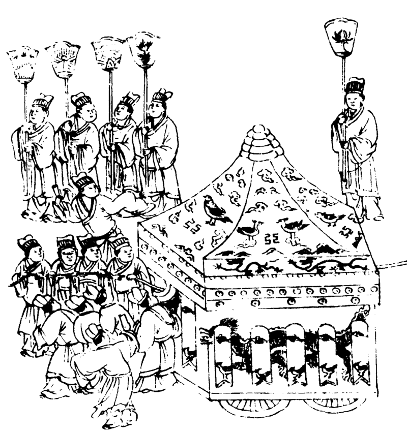 永樂大典卷之七千三百八十九 十八陽 喪〈喪禮四十九國恤〉 〈飾棺周禮春官縫人掌縫棺飾焉孝子啓見棺。猶見親之身。旣載飾而以行。遂以葬若存時居於惟幕而加文綉喪大記曰。飾棺。君龍惟之屬䟽〉 〈曰。幕人共惟幕。鄭註云。在旁曰惟。在上口幕是存時居於惟幕。而云加文繡者生時惟幕無文繡今死恐衆惡其親。故加文繡。即所引喪大記飾棺〉 〈是也。衣翣柳之材。衣。於旣反。 必先纏衣其木。乃以張飾也。柳之言寡諸飾之所聚 䟽曰。翣。即方扇是也。柳。即惟荒是也。二者皆有材。縫人以采〉 〈繒衣纏之。乃後張飾於其上。禮記喪大記。飾棺。君龍惟。三池。振容。荒火三列黻三列。素錦褚加僞荒。纁紐六。齋五采。五貝。黼翣二。黻翣二畫翣二〉 〈皆戴圭。魚躍拂池。君纁戴六纁披六。飾棺。以華道路及壙中不欲衆。惡其親也。荒。蒙也。在旁曰惟。在上曰荒。所以衣柳也。士布惟布荒。用白布。君大〉 〈夫加文章爲。黼荒。緣邊為黼文。大黻爲列於其中耳。僞當爲惟。或作于聲之誤也。大夫以上有褚以襯。覆棺。乃加惟荒於其上。紐。所以結連惟荒者〉 〈也。池。以竹為之。如小車笭。衣以青布。柳象宫室縣池於荒之瓜端。若承書然。云君大夫以銅爲魚縣於池下。榆榆翟也。青質五色。書之於絞繒而〉 〈之以爲振容。象水草之動摇。行則又魚上拂池。雜記曰。大夫不揄绞薦於池下。是不振容也。士則去魚象車蓋蕤縫合雜采為之。形如爪分然綴〉 〈貝落其上。及旁戲之。言值也所以連繫棺東與柳材。使相值。因而结前後披也。漢禮。翣以木爲筐廣三尺。髙二尺四寸。方兩角髙。衣以白布書者。盡〉 〈雲氣。其餘各如其象。柄長五尺。車行使人持之而從。既定。出於壙中。弓曰周人墻置翣是也。綏當作緑讀此寇蕤之蕤蓋五采羽。注。於翣首也〉 〈䟽曰。此明葬時尊卑棺飾君龍惟者。諸侯柳車邊障以白布為之。王侯皆畫為龍。象人君之德。故云龍惟也。池。謂織竹爲龍衣以青布往著於柳上〉 〈荒邊瓜端。象平生宫室有承霤也天子生有四注屋四面承霤。柳亦四池象之諸侯屋亦四。注。而柳降一池。關於後一。故三池也。振容者振。動也。容。〉 〈飾也。謂以絞繒為之。長丈餘如播。畫幡上爲雉。縣于池下為容飾。車行則幡動。故曰振容。黼荒者。荒蒙也謂柳車上覆。謂鱉甲也緣荒覆為白黑斧〉 〈文。故云黼荒。火三列者。列行也。於鱉甲黼文之上。荒中夾又盡為火三行也。火形如半環也。黻三列者。又畫爲兩。已相。腎爲三行也。素錦白錦也。褚〉 〈屋也。於荒下又用白錦以為屋也。莫在路。象宫室也。故雜記云。素錦以爲屋而行。即褚是也。加僞荒者。惟者逢墻。荒是上盖。褚。覆竟。而加惟荒於褚〉 〈外也。纁紐六者。上盖與邊墻相雜。故又以纁為紐連之相庵旁各三。凡用六紐也。齊五采者。謂鱉甲上當中夾。形圓如車盖。髙三尺。逕二尺餘。五采。〉 〈謂人君以五采繒衣也。列行相次。故云五采也。五貝者。又連貝為五行。交絡齊上也。黼翣二。黻翣二。盡翣二。翣形似扇。以木為之。在路則障車。入椁〉 〈則障柩也。凡有六枚。二盡爲黼。二盡為黻。二盡為雲氣。諸侯六。天子八。禮器云。天子八翣。諸侯六。大夫四。鄭註縫人云。漢禮器制度。飾棺。天子龍。火〉 〈黼黻皆五列。又有龍翣二。其戴皆加璧也。皆戴圭者。謂諸侯六翣。兩角皆戴圭玉也。魚躍拂池者。凡池必有魚。故此車池縣絞雉。又縣銅魚於池下。〉 〈若車行則魚跳躍上拂池也。隱義曰。振容在下。是魚在振容間。君纁藏六者。事異飾棺。故更言君也。纁戴。謂用纁帛繫棺。紐著柳骨也。戴。值也。使棺堅〉 〈值。棺横東有三。每一束兩邊輙角。屈皮為紐。三秉有六紐。今穿纁戴於紐。以繫柳骨。故有六戴也。纁被六者。纁。謂亦用絳帛為之。以一頭繫所連柳〉 〈纁戴之中。而出一頭於惟外。人牽之亦有六也。謂之披者。若車登髙。則引前以防軒。車適下。則引後以防翻。車欹左。則引右。欹右。則引左。使車不傾〉 〈覆也。天子七月而葬。五重八翣。天子葬五重者。謂抗木與箇也。葬者抗木在上。茵在下。士喪禮下篇。陳器曰。抗木横三。縮二。如抗席三。加茵用䟽布〉 〈縮翦有幅。亦縮二横三。此士之禮一重者。以此差之。。上公四重。䟽曰。古者為椁。累木於其四邊。上下不周。致茵於椁下。所以。籍棺。從上下棺之後。〉 〈又置抗木於椁之上。所以抗載於土。引士喪禮下篇陳器云云者。以士禮一重證此經葬五重三重。之義也。皇氏云。下棺之後。先加折於壙上。以承抗席。〉 〈折。猶履也。方鑿連木為之。盖如床。縮者三。横者五。無簀。於上加抗木。抗木之上加抗席三。此為一重。如是者五。則為五重。茵者。籍棺外下繜。用淺色〉 〈縧布為之。每將一幅輙合縫為囊。將茅莠及香草庵其中。如今有絮縟也。而繻二横三。每為一重也。抗木上横三。下縮二。以其在上象天。天數竒。故〉 〈上三也。下象地。地數偶。故下二也。茵則上直二。下横三。茵既在下。下法地也。上數二象地。下數三象天。以天三合地二。入中夾也。玉藻。有虞氏之綏。〉 〈夏后氏之綢練。殷之崇牙。周之璧翣。綏。亦旌旗之綏也。夏綢。其扛以練為之。旒。殷又刻繒
