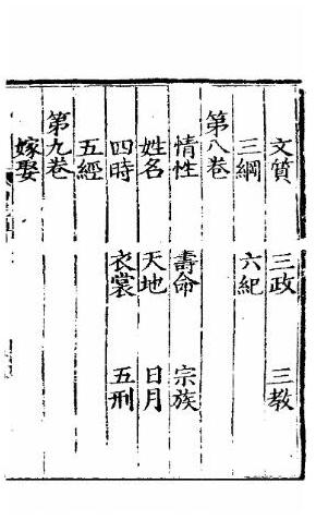 白虎通义,四库本,两卷,问答体,43篇,每篇若干条。《提要》称44篇,实原目录将《三纲六纪》分为“