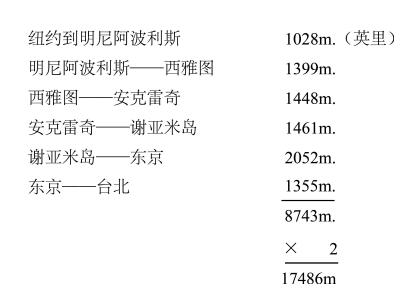 此行共七十日(Nov·16,1952—Jan·25,1953),走了17486英里。其路程如下: