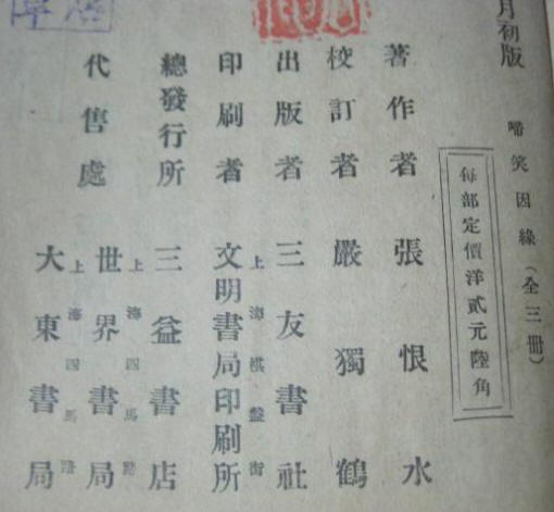 《啼笑因缘》1930年3月至11月连载于《新闻报·快活林》,1930年12月由上海三友书社结集出版,共3册22回。 是二十世纪中国最为轰动的文学巨著,六次被搬上银幕,七次被改编成电视剧,胡蝶、冯宝宝、米雪、袁立、关山、刘松仁、付彪、胡兵,历代巨星影后争相出演。 作为中国大众文学最精致的范本,《啼笑因缘》历来被认为是最适合搬上银屏的文学作品。富家子弟与平民女子、部长千金、江湖侠女间的爱情纠葛,曲折多变的悲喜恋情,善恶交锋的旷世传奇。 ![]() ![]() ![]() ![]() ![]() ![]() ![]() ![]() ![]() ↑民国十九年十二月初版 啼笑因缘 全三册 每部定价洋贰元六角 著作者 张恨水 校对者 严独鹤 出版者 三友书社 |